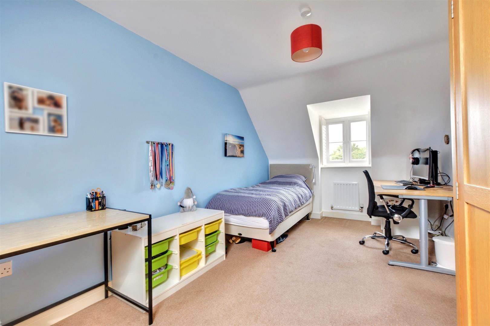 UPVC double glazed window to the front elevation, wall mounted radiators, ceiling light point, Velux style roof light to the rear elevation, built-in wardrobes providing ample additional storage space.