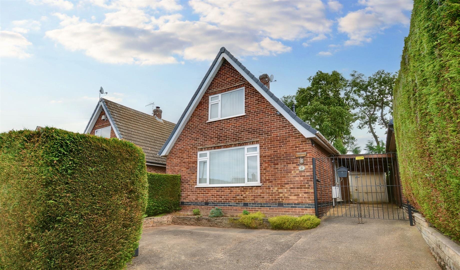 To the front of the property there is a lowered kerb entry point to an initial front driveway providing off-street parking for two vehicles with partial screening of hedgerow to the boundary line. Double gates which provide access down the right hand side of the property providing further parking leading to a covered carport for potentially a further two/three vehicles. The driveway then continues and leads to the detached garage via an up and over door with gated access then leading into the rear garden.