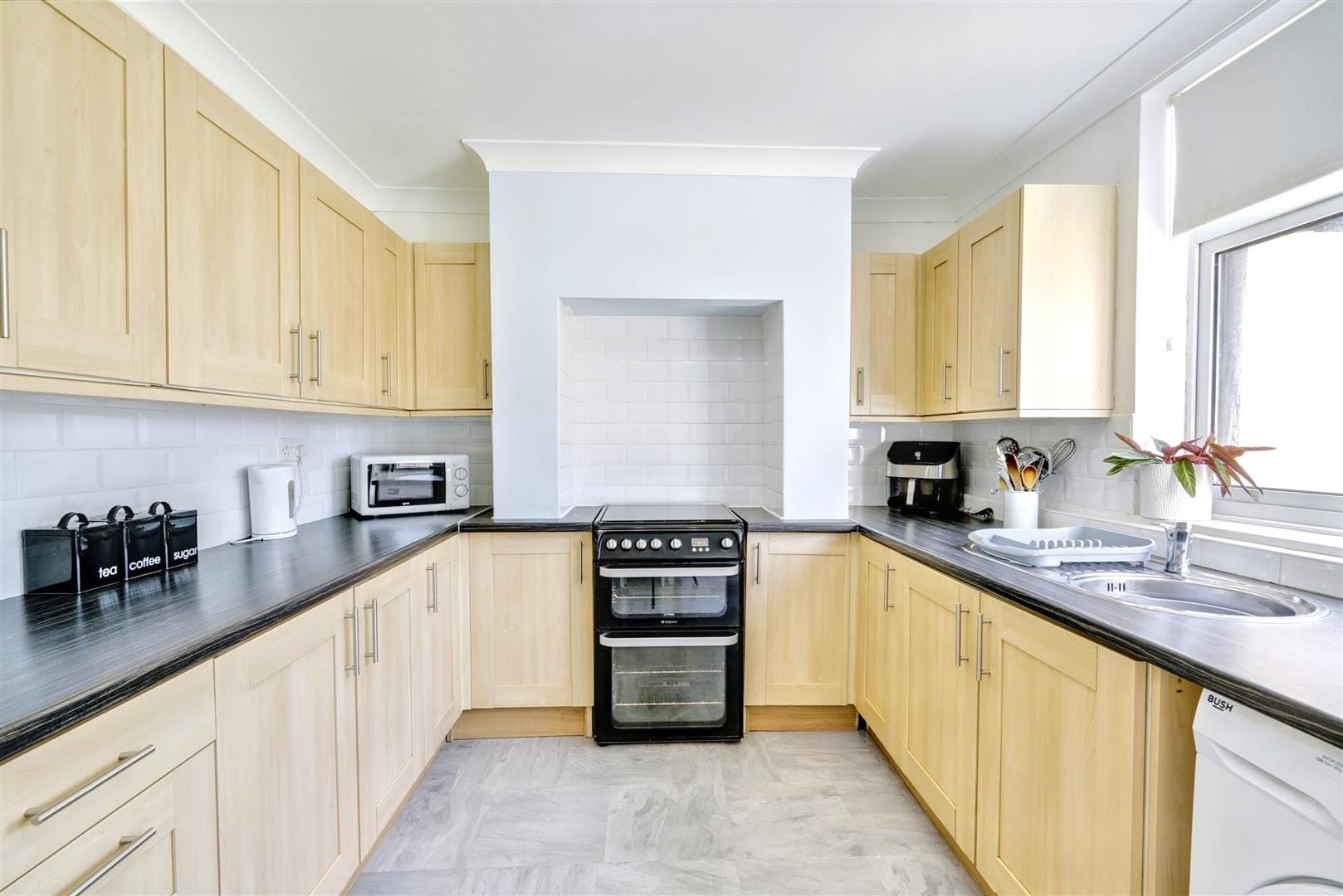 The kitchen is fitted with a stainless steel sink with a mixer tap set in a work surface with cupboards and space for an automatic washing machine below, space for a cooker set in a recess, further work surface with cupboards and drawers beneath, matching eye level wall cupboards, understairs storage cupboard where the electricity meter and electric consumer unit are positioned, Worcester Bosch boiler housed in a fitted cupboard, double glazed window to the rear, half glazed door leading out to the rear, spaces for an upright fridge/freezer and a tumble dryer and tiling to the walls by the work surfaces areas.