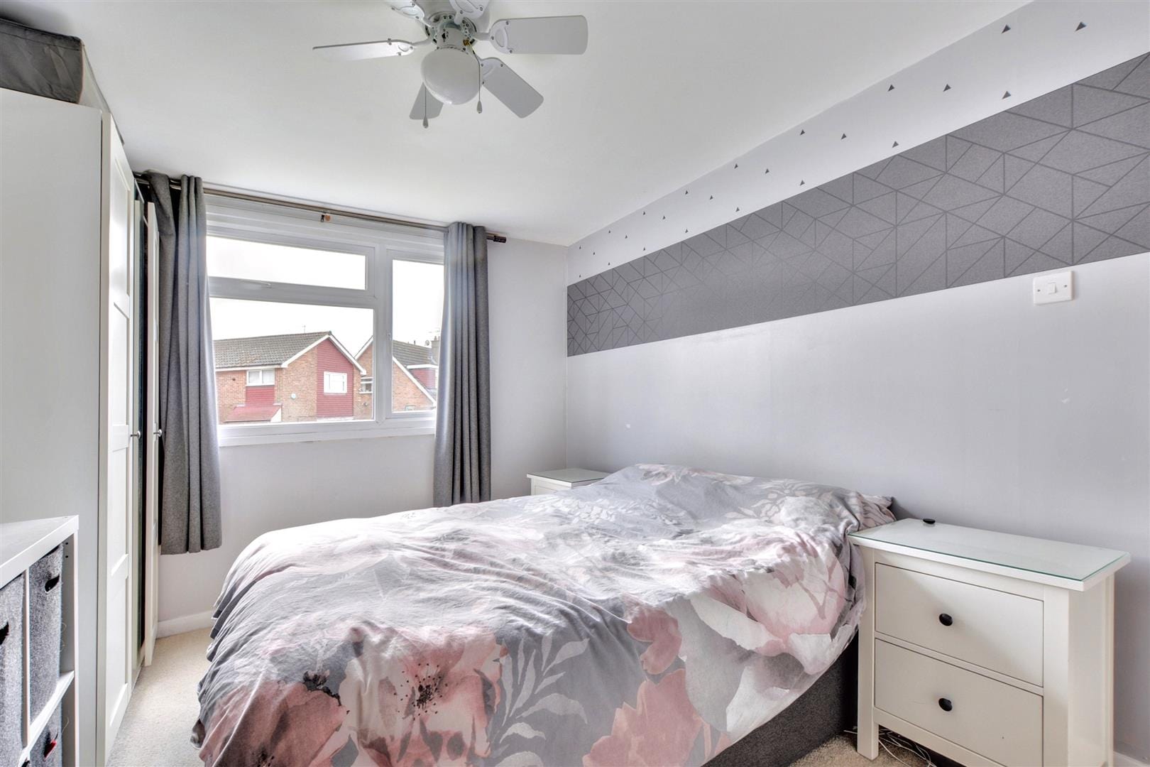 The rear garden is private and low maintenance, combining a neatly laid astroturf lawn with a paved patio seating area. There’s also convenient side access, making garden upkeep or bike storage simple and practical.