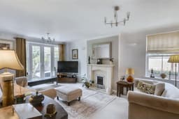 Double glazed, double opening French doors with windows to the sides leading out to the private rear garden, coal effect gas fire set in a Minton style surround with hearth, cornice to the wall and ceiling, two radiators, two wall lights and double opening wood panelled doors leading into: