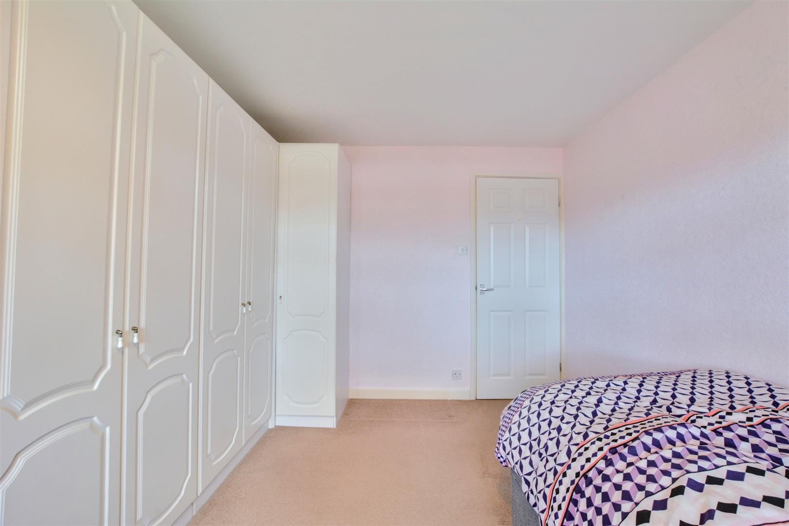 A carpeted double bedroom with UPVC double glazed window to the front, fitted wardrobes and drawers and a radiator.