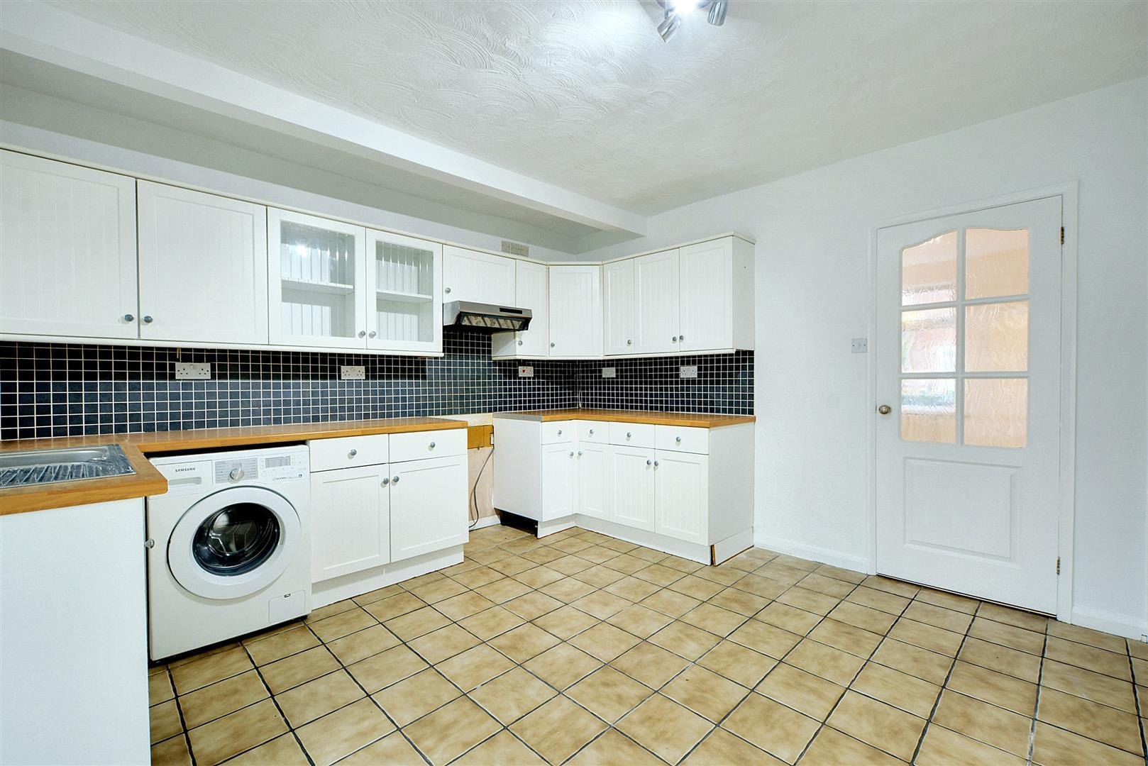 A range of wall and base units with work surfacing over and tiled splashbacks, sink with drainer and mixer tap. Space and fittings for freestanding appliances to include electric cooker, washing machine and fridge freezer. Tiled flooring, UPVC double glazed sliding door to the conservatory and built in storage unit housing the boiler.