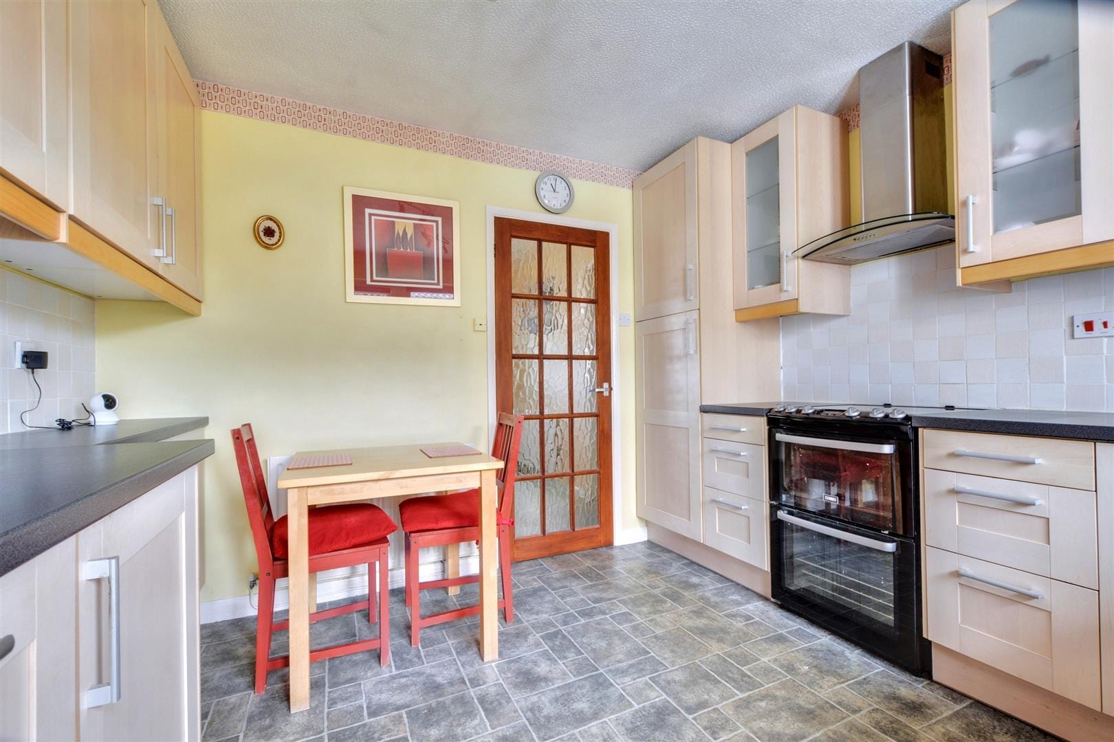With a range of matching wall and base units incorporating laminate work surfaces over, 1 1/2 bowl sink and drainer unit with mixer tap above, space and plumbing for automatic washing machine, space and point for freestanding cooker, stainless steel glass extractor hood above, tiled splashbacks, UPVC double glazed window to the rear elevation with UPVC double glazed door, ample space for breakfast table, wall mounted radiator, ceiling light point, built-under fridge and freezer, Alpha gas central heating combination boiler providing hot water and central heating to the property housed within matching cabinet.