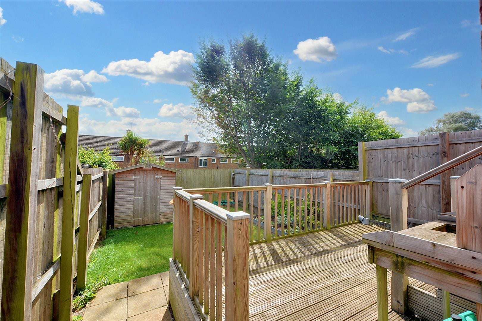 To the front of the property you will find a tarmac driveway with two parking spaces and gated side access leading to the sunny south facing garden, which includes a decking area overlooking the lawn beyond, stocked bed, useful storage shed, and fence boundaries.