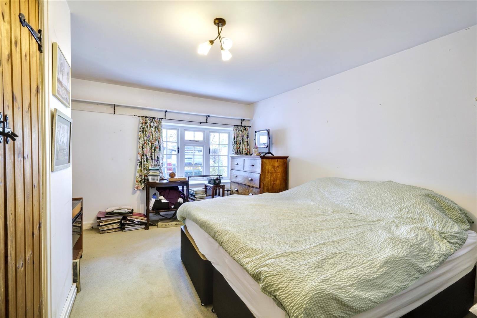 A carpeted double bedroom, with radiator, access to the loft hatch with loft ladders, wooden frame double glazed window to the front aspect, en-suite and large walk-in storage area/dressing room.
